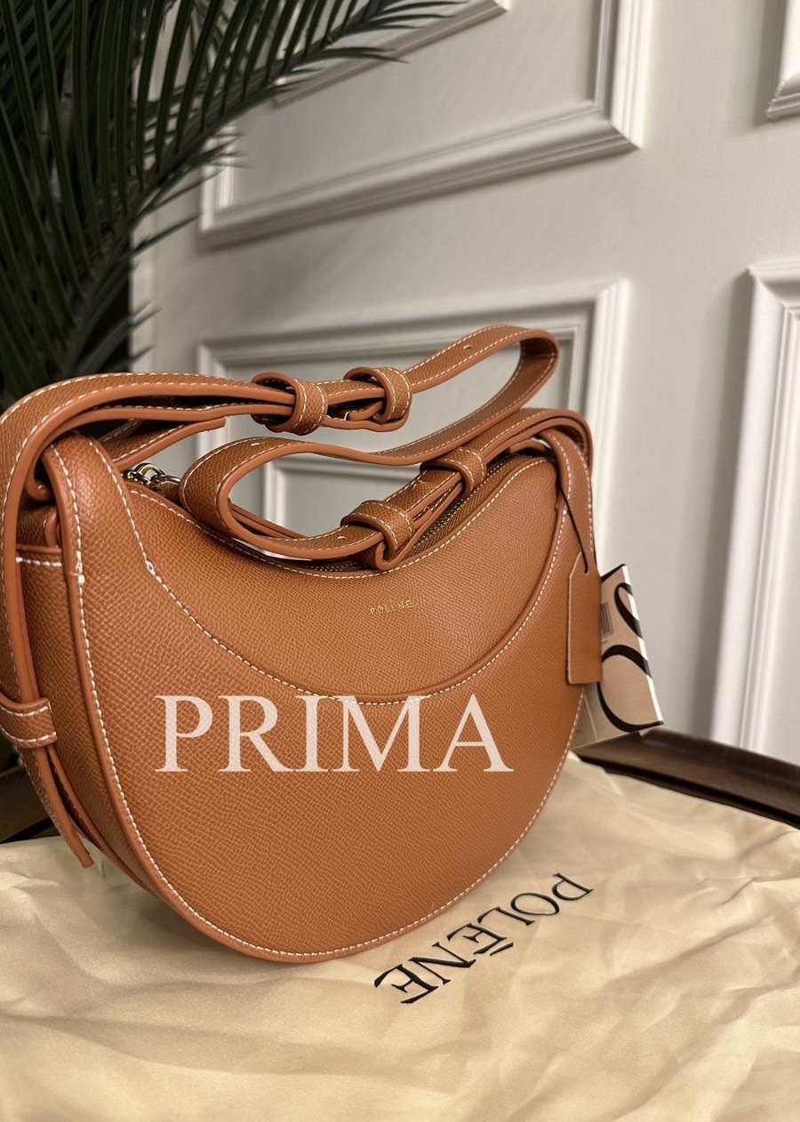 تتميز حقيبة اليد Polène Numéro Dix بشكل نصف قمر مع جسم منحني وجلد محكم وأحزمة قابلة للتعديل لحملها على الكتف أو بشكل متقاطع . جودة عاليةً مختومة قاعدة 25 سم