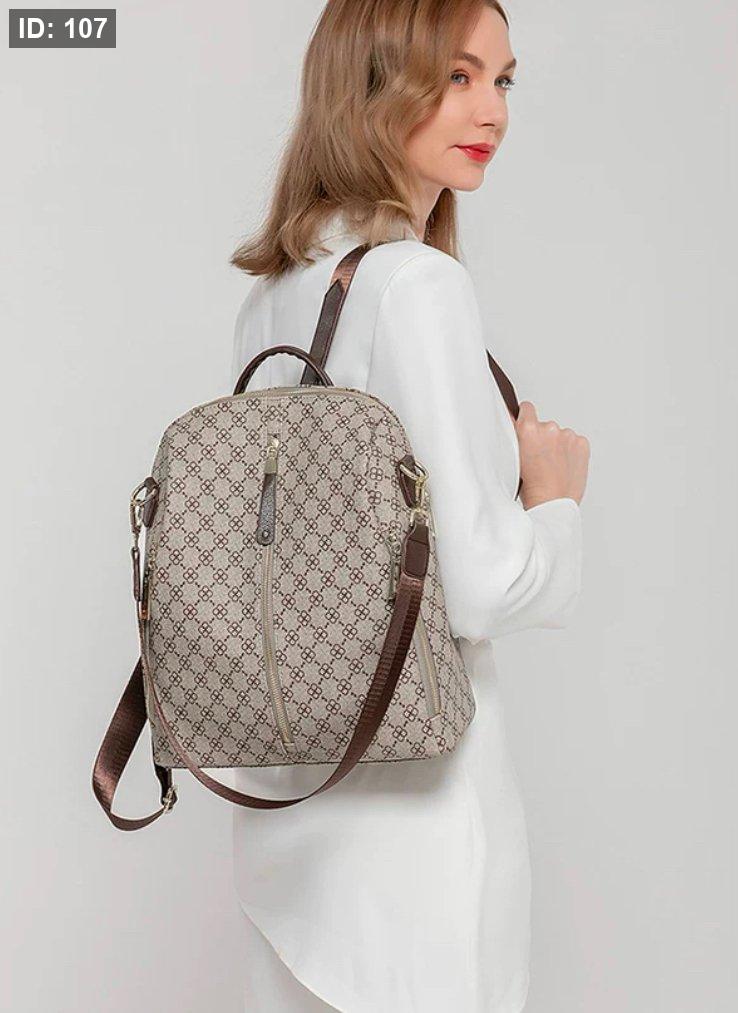 حقيبة ظهر نسائية أنيقة بنقوش أحادية اللون باللون البني مع سحابات متعددة وأشرطة قابلة للتعديل.جودة عالية وسعر خرافي قاعدة 32 سم وارتفاع 33