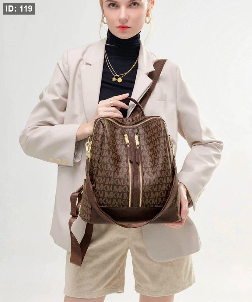 حقيبة ظهر نسائية أنيقة بنقوش أحادية اللون باللون البني مع سحابات متعددة وأشرطة قابلة للتعديل.جودة عالية وسعر خرافي قاعدة 32 سم وارتفاع 33