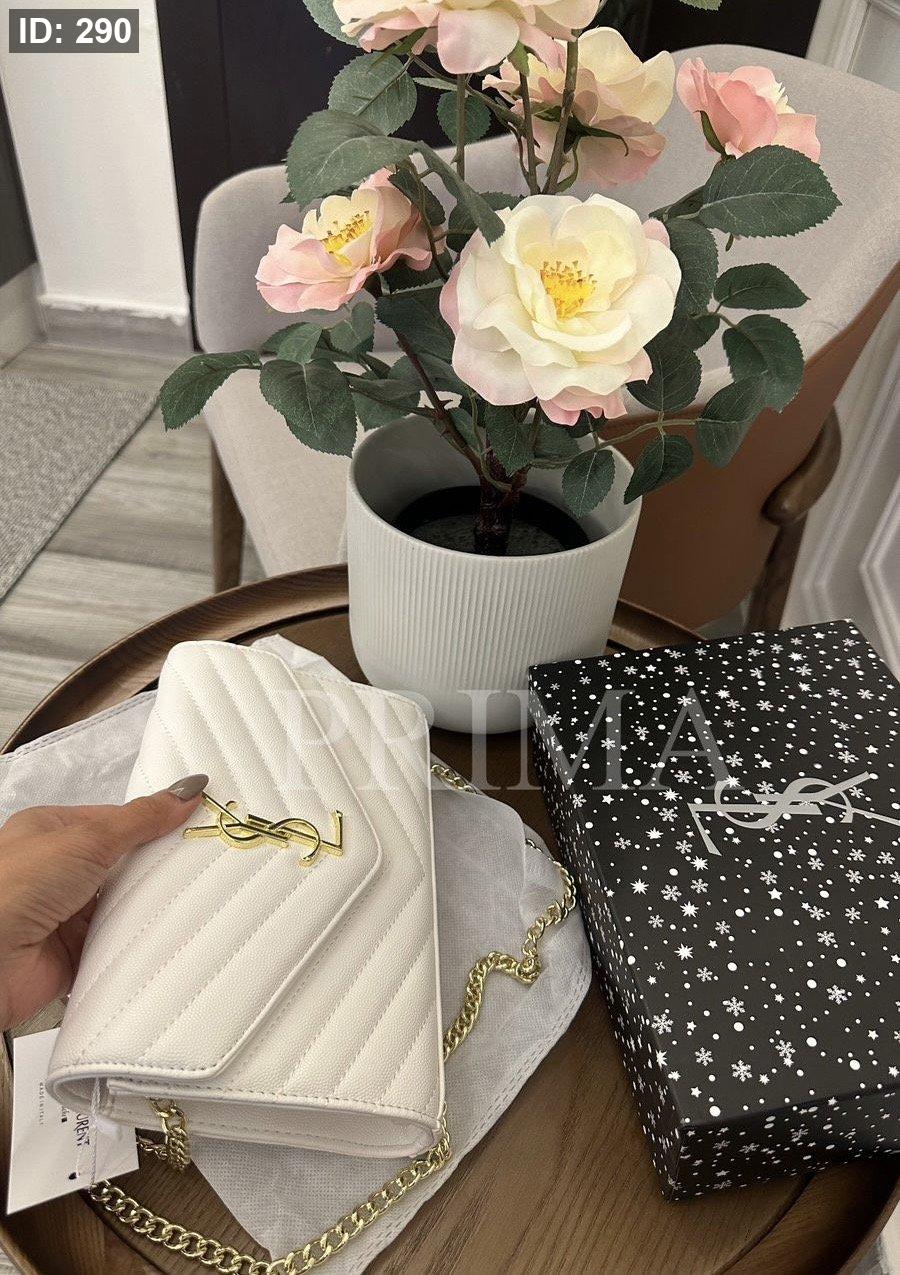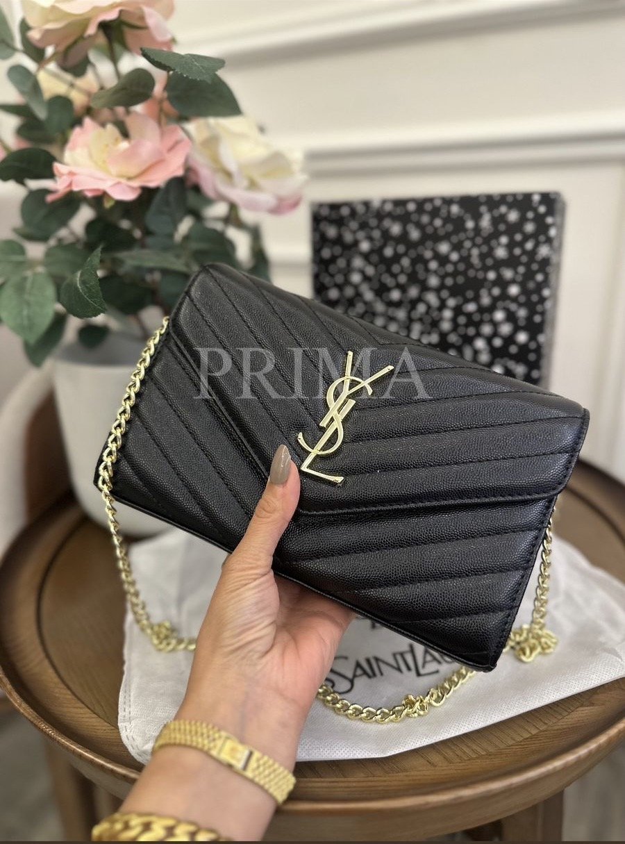 حقيبة سان لوران كاساندرا مقاس 22 سم . حقيبة تجمع بين الفخامة والتصميم الأنيق مثالية للمناسبات الرسمية والإطلالات اليومية ممكن حملها باليد او على الكتف معها سلسلة معدنية مختومة ومع علبة هدايا