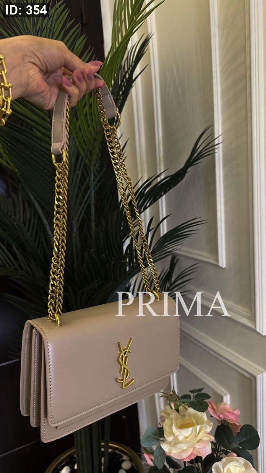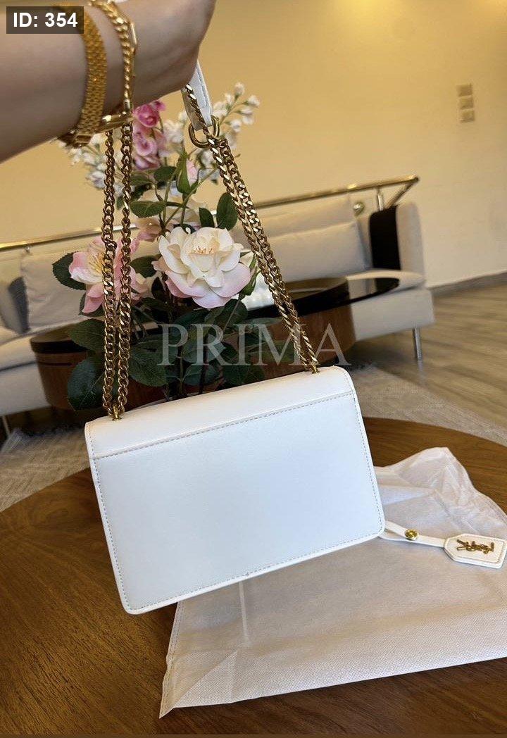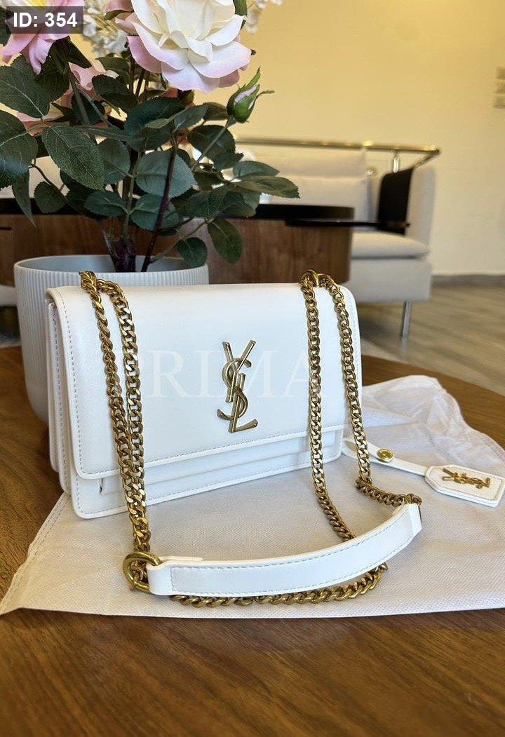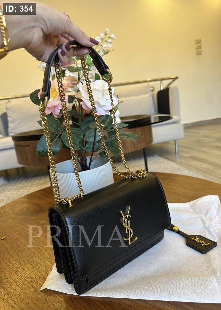 حقيبة إف سان لوران كوالتي عالي من الجلد الناعم معها سلسلة ذهبية ممكن ارتدائها على الكتف او كروس بودي قاعدة 21 سم