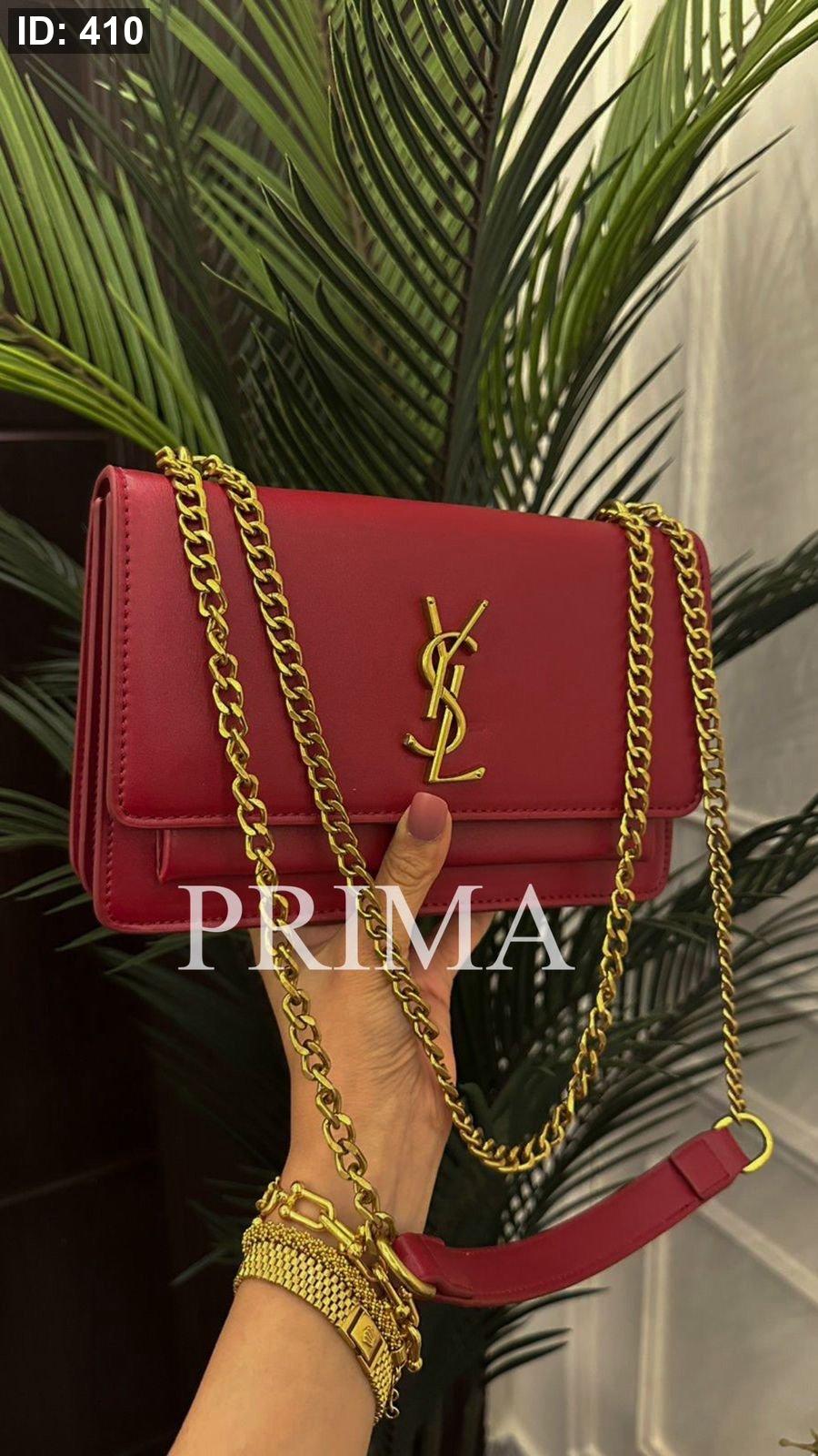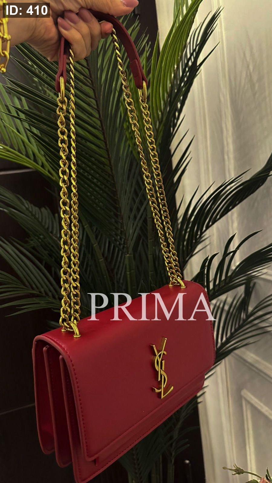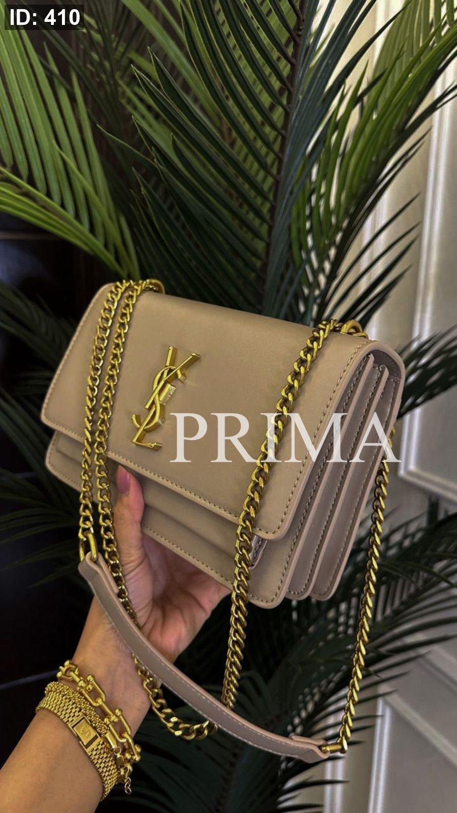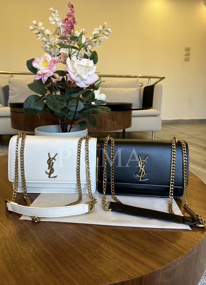 حقيبة إف سان لوران كوالتي عالي من الجلد الناعم معها سلسلة ذهبية ممكن ارتدائها على الكتف او كروس بودي قاعدة 21 سم