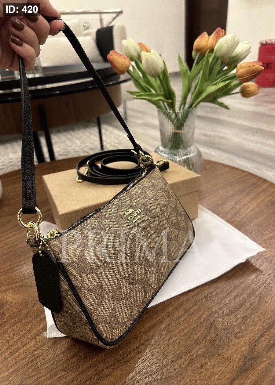 و حقيبة "Coach Nolita 19" بتصميم كانفاس مميز . حقيبة صغيرة مدمجة على الرغم من حجمها الصغير، توفر مساحة كافية لحمل الأساسيات مثل الهاتف والمفاتيح والمحفظة الصغيرة. مختومة وفل باكج قاعدة 20 سم