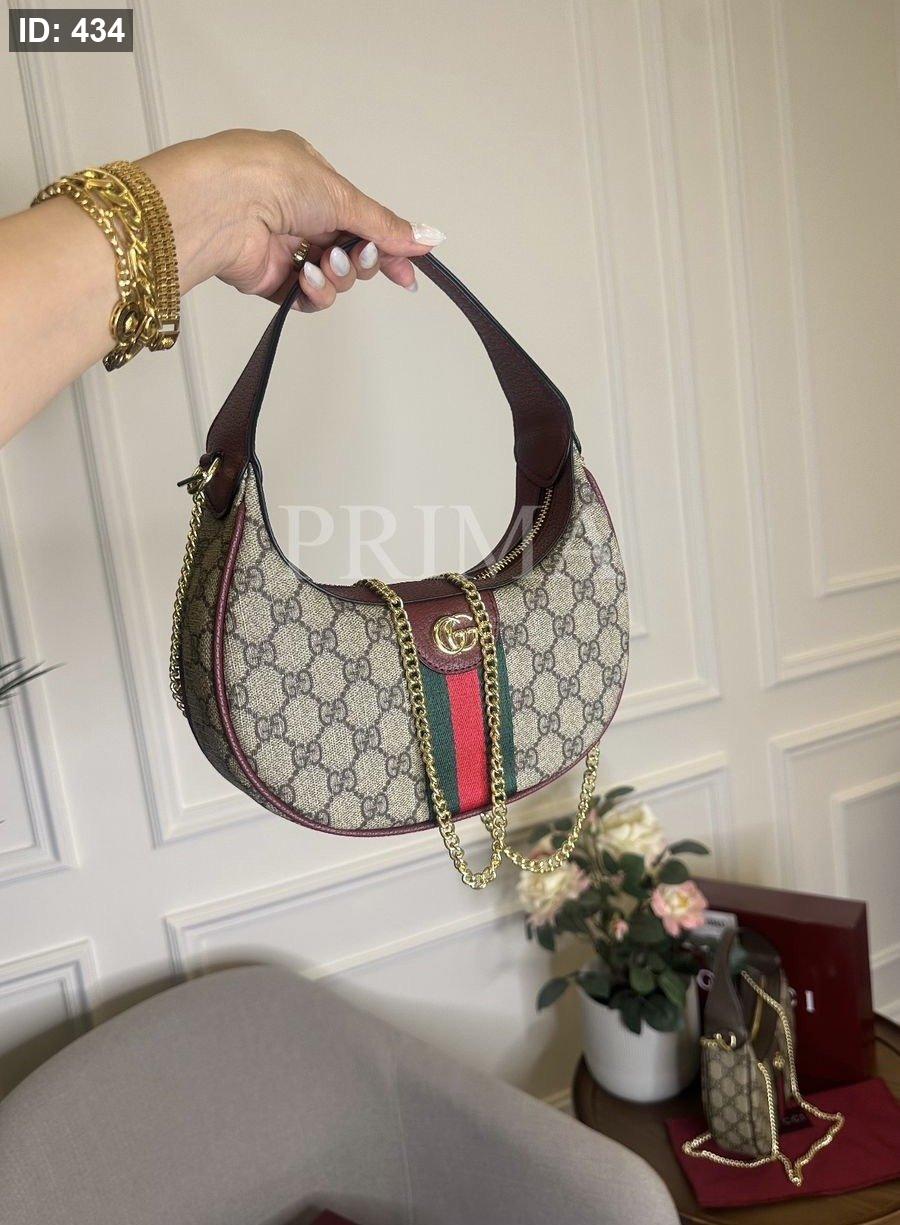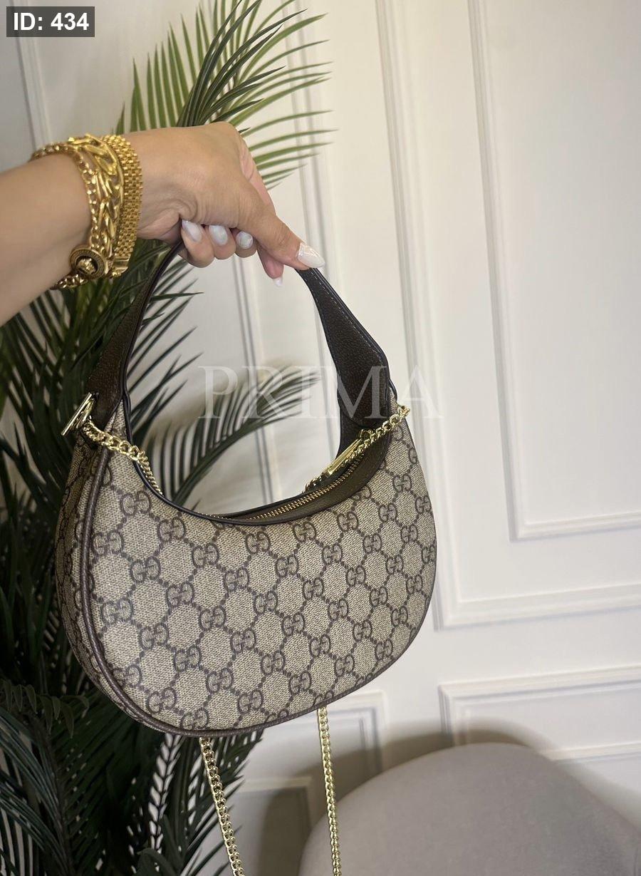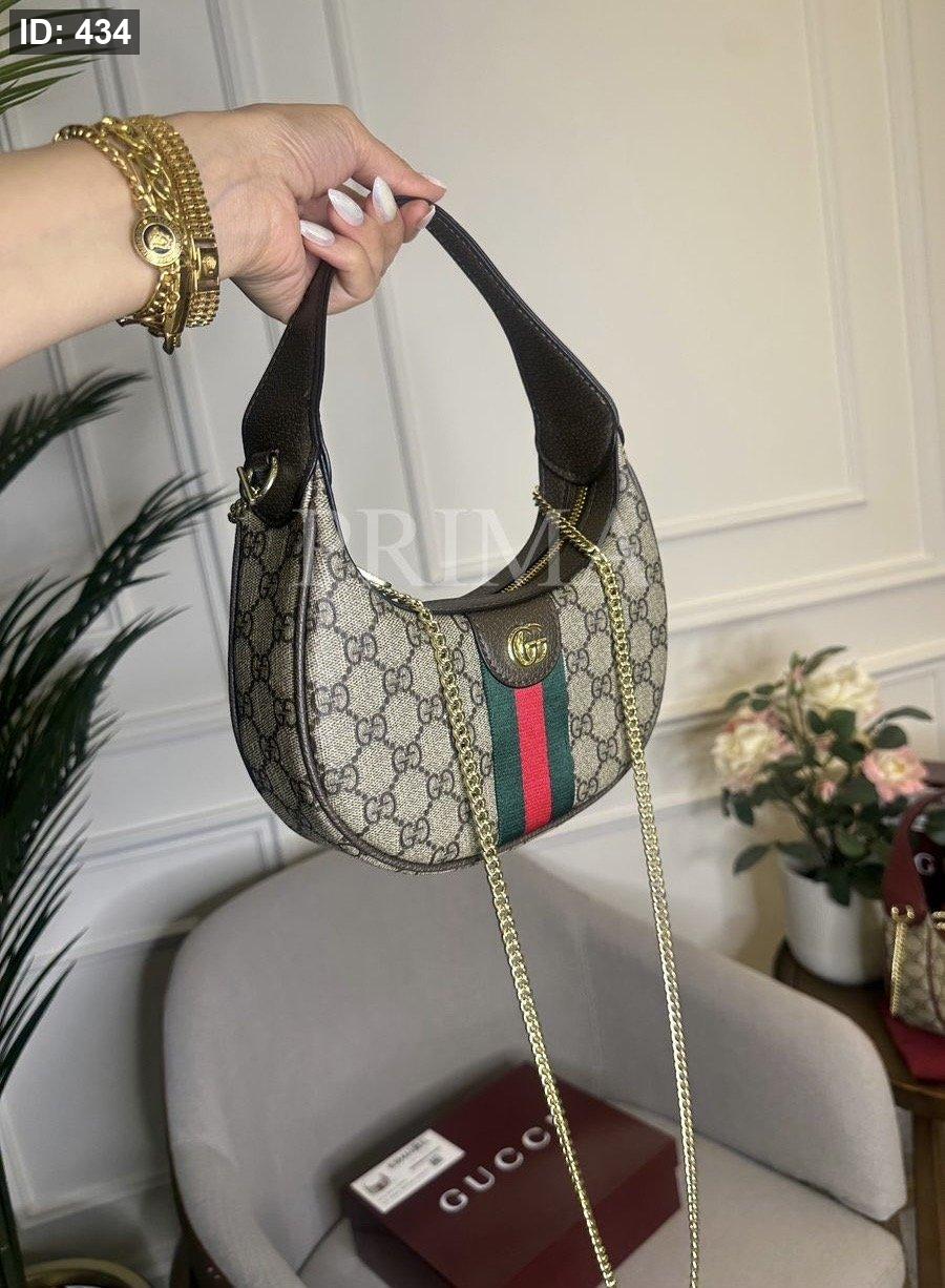 حقيبة كتف غوتشي أوفيديا الصغيرة (Gucci Ophidia Small Shoulder Bag) تتميز الحقيبة بشكلها الهلالي الأنيق . تأتي الحقيبة بحزام سلسلة ذهبي يضيف لمسة من الفخامة. يمكن حملها كحقيبة كتف أو باليد. جودة عالية وفل باكج مختومة . قاعدة 20 سم