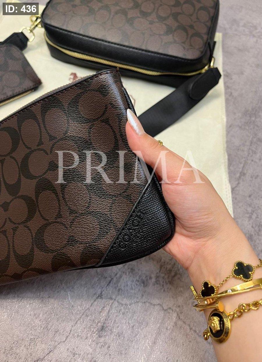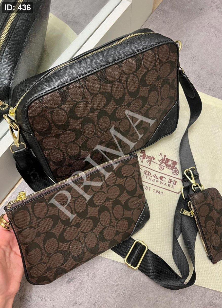 حقيبة Coach Charter Crossbody 24 مصنوعة من قماش مميز باللون البني والأسود المميز . جودة عالية.مختومة كروس بودي قاعدة 25 سم