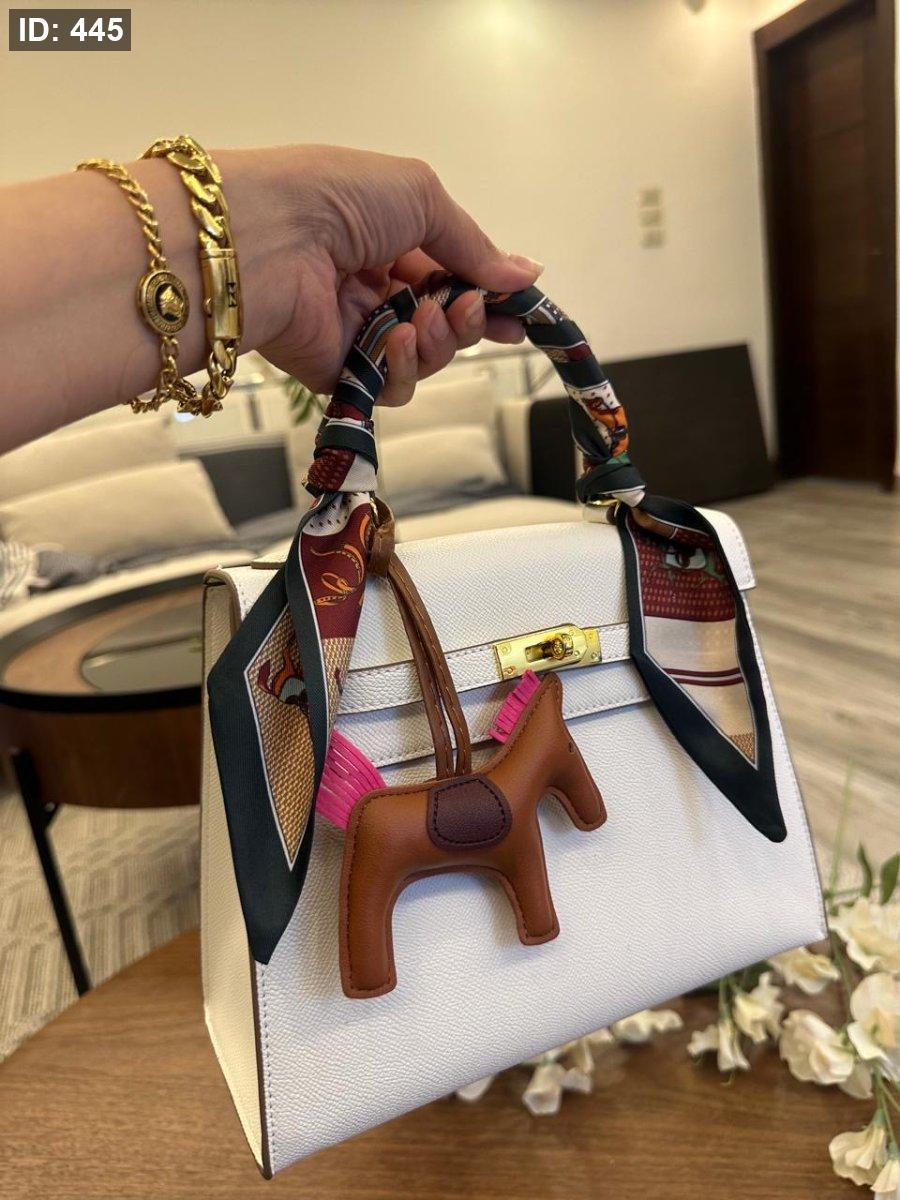 ايرميز كيلي جلد كواليتي عالي مع سكارف وميدالية حصان غير مختومة قاعدة 25 سم