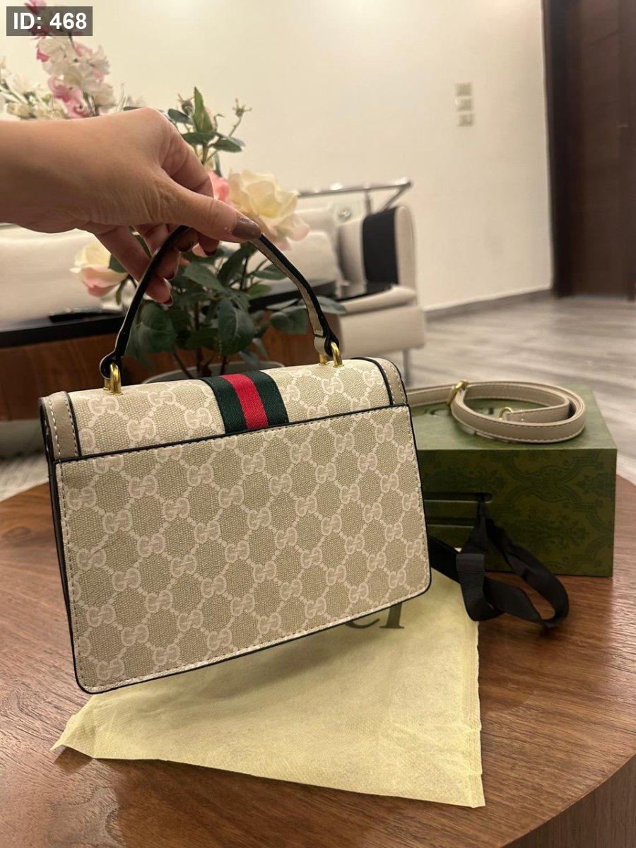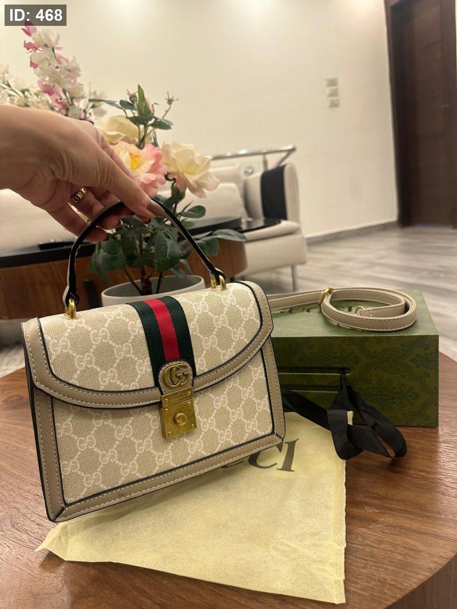 حقيبة "أوفيديا" (Ophidia) بمقبض علوي من ماركة غوتشي (Gucci). مع حزام طويل كروس . حقيبة كلاسيكية مناسبة لكل يوم مختومة وفل باكج قاعدة 25 سم