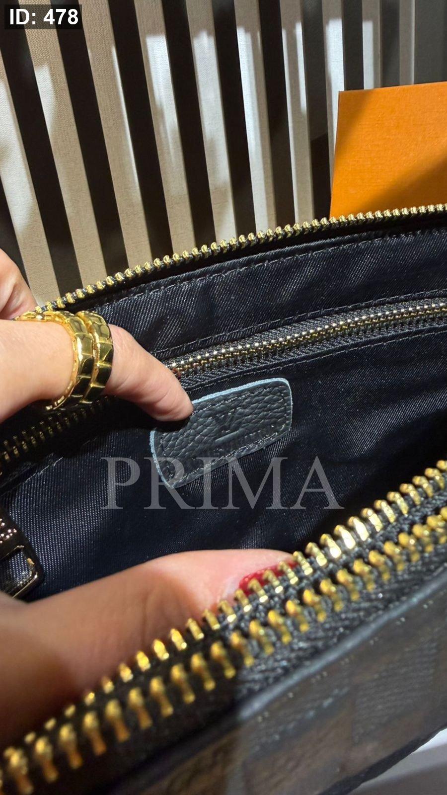 تُعرف هذه الشنطة من ماركة لويس فيتون (Louis Vuitton) باسم "باوتش" (Pouch) أو "حقيبة يد" (Handbag)، وتحديداً ضمن تشكيلة Pochette Voyage.تفاصيل الشنطة:الموديل: تتميز بنمط المربعات الشهير الخاص بالماركة والمعروف باسم Damier، وتحديداً بلون Damier Graphite (الأسود والرمادي الداكن).الخامة: عادة ما تكون مصنوعة من جلد البقر الفاخر أو الكانفاس المطلي.الاستخدام: تُستخدم كحقيبة يد صغيرة لحمل المستلزمات الشخصية مثل الهاتف، المحفظة، والمفاتيح، وتأتي أحياناً مع حزام معصم جلدي.فل باكج مختومة قاعدة 24 سم